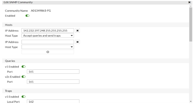1. Go to System > SNMP and create an SNMPv1/2 with the following information