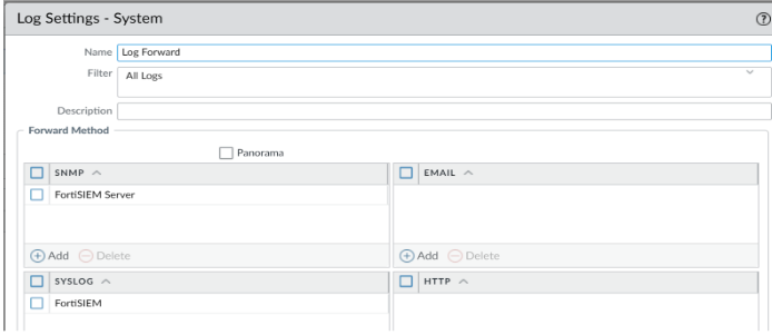 Palo Alto NGFW SNMP & Syslog log forwarding to FortiSIEM