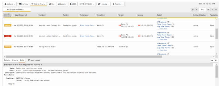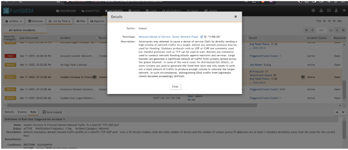These simulated threats triggered FortiSIEM alerts, which were promptly analyzed and triaged. Incidents were tracked using FortiSIEM’s integrated ticketing system, with documented workflows for investigation, containment, and remediation.